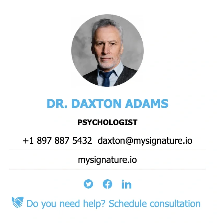 Wenn Sie E-Mail-Signaturen für Ärzte erstellen, dann sollten Sie eine Telefonnummer angeben, unter der Sie erreichbar sind. Das kann Ihre persönliche Telefonnummer oder die Nummer der Telefonzentrale Ihrer Abteilung oder Ihres Gebäudes sein. Es ist auch ratsam, eine Notrufnummer anzugeben, falls ein Patient dringend medizinische Hilfe benötigt. Das kann die Nummer eines anderen Arztes oder die Notrufnummer Ihres Landes sein.
