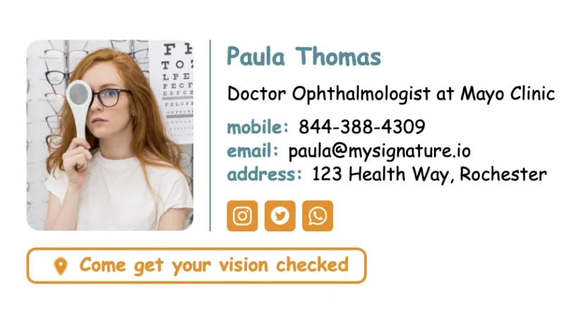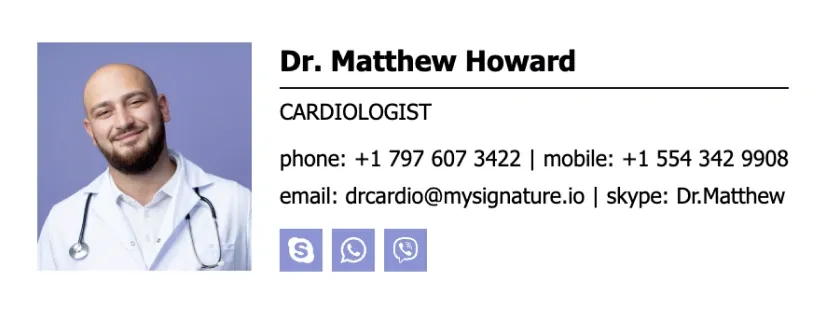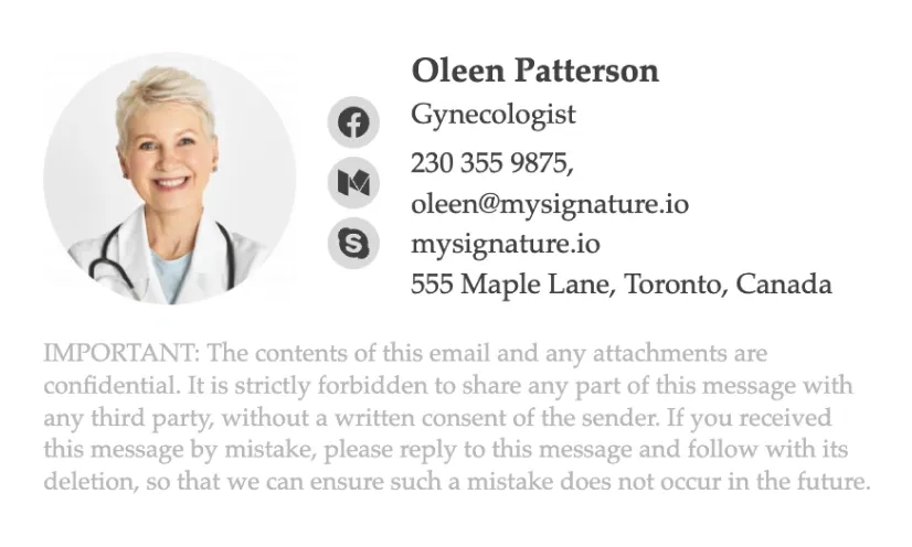 Jetzt wissen Sie, wie Sie eine E-Mail-Signatur für Ärzte erstellen können und welche Elemente darin enthalten sein sollten. Lassen Sie uns einige Beispiele für Mediziner-Signaturen aus unserer Galerie mit E-Mail-Signaturvorlagen anschauen.